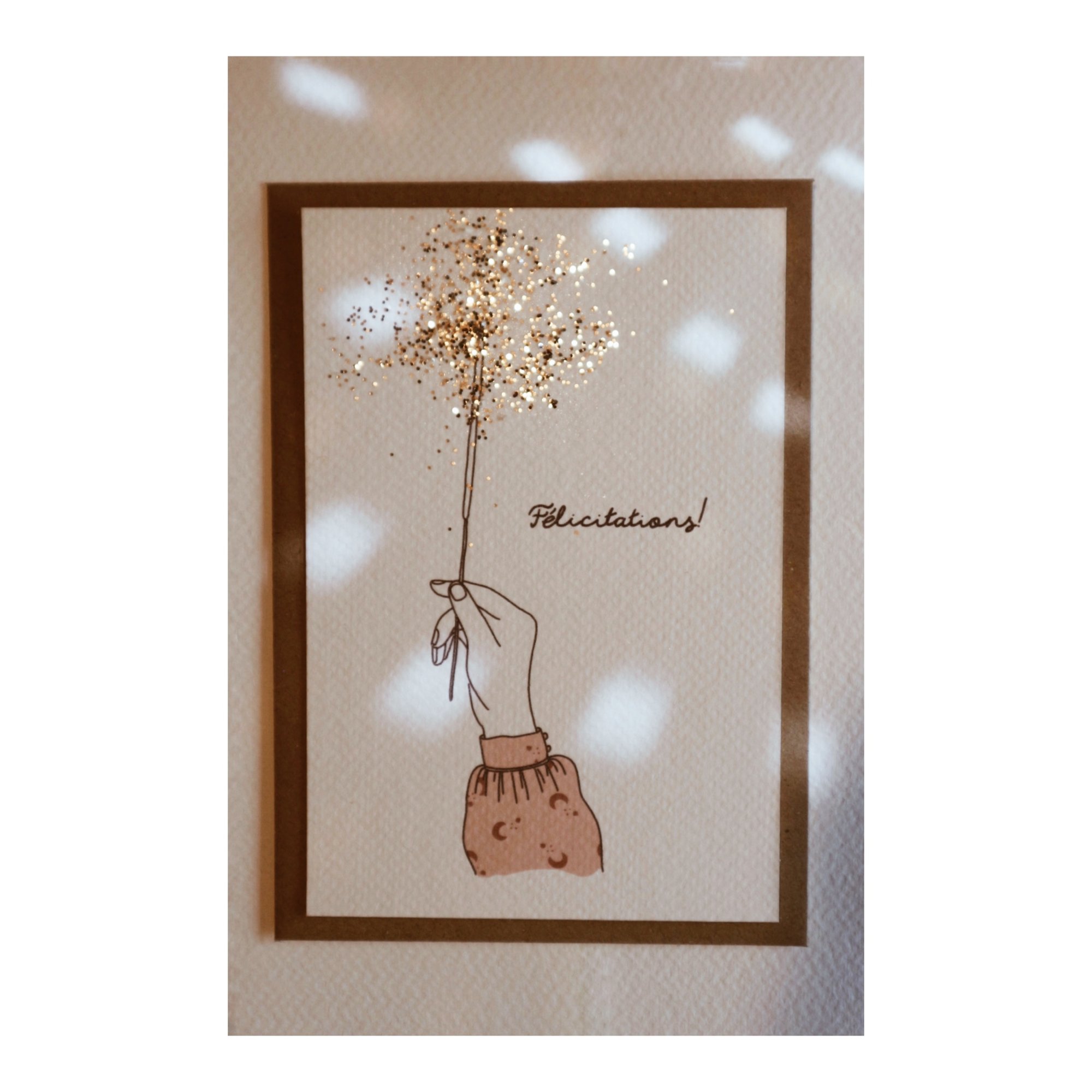 Pose des paillettes à la main ce qui confère un caractère unique à chaque carte.