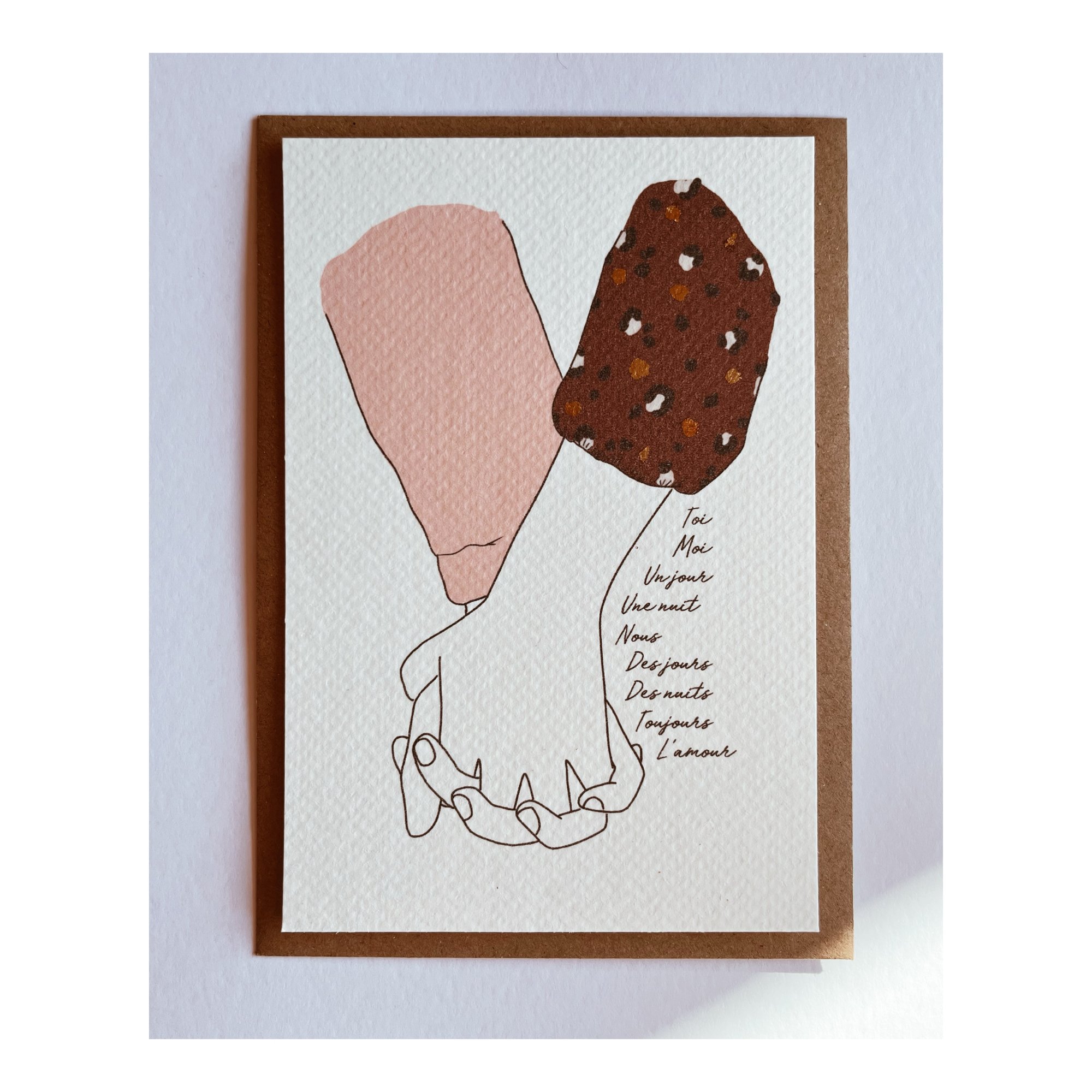 Impression numérique sur papier d'art 10x15 cm . Pose feuille d'or à la main donc chaque carte est unique. Enveloppe kraft comprise